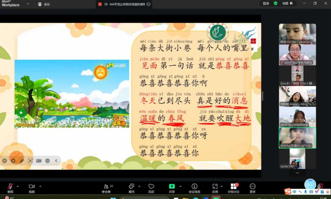 本学期为备战第九届全球华语朗诵大赛,团队专门面向美国学习者精准设计了华语朗诵课程。志愿者教师根据大赛要求,围绕朗诵语言、朗诵效果、主题内容、演讲技巧等展开教学,为参赛选手量身选择了兼具隽永诗意和良好朗诵效果的三苏诗词,开展“集体指导+一对一指导”教学,实现了学习者演讲能力提高和诗词文化浸润的双丰收。教学团队为印尼五所华校七个班级开设了中文口语课,他们结合儿童认知特点,将中国十二生肖、中国春节习俗等文化内容融入课堂,通过情景对话、动画演示、图片放映等趣味形式教授基础中文口语,让印尼各地区的幼儿在快乐学习中感受中国民俗的独特魅力。