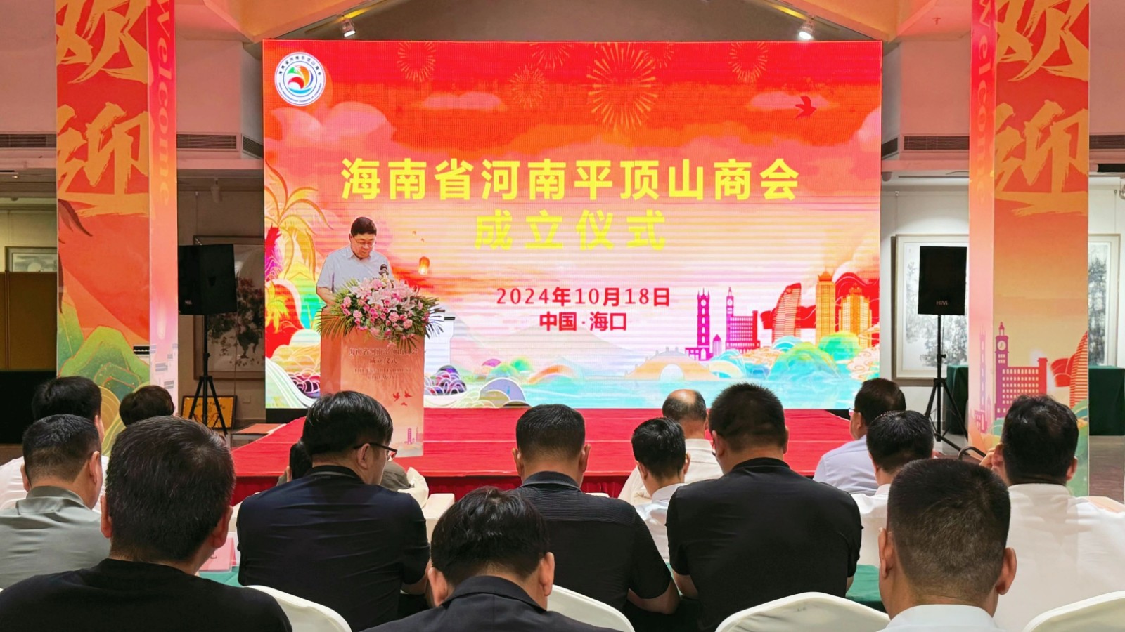 10月18日,海南省河南平顶山商会在海南省海口市揭牌成立。平顶山市委常委、统战部部长刘颖,海南省工商联党组成员、秘书长谭辉出席并讲话。