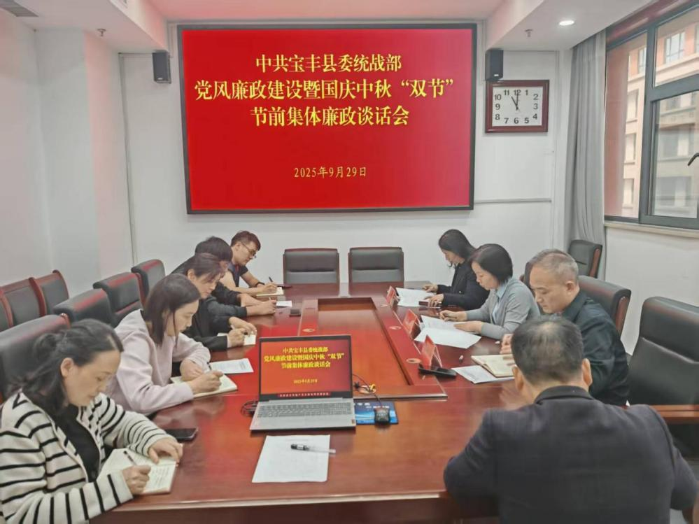 9月29日上午,宝丰县委统战部召开党风廉政建设暨国庆、中秋“双节”节前集体廉政谈话会,统战部副部长(分管日常工作)、县民宗局局长张铁平主持会议并讲话,全体党员干部参加。