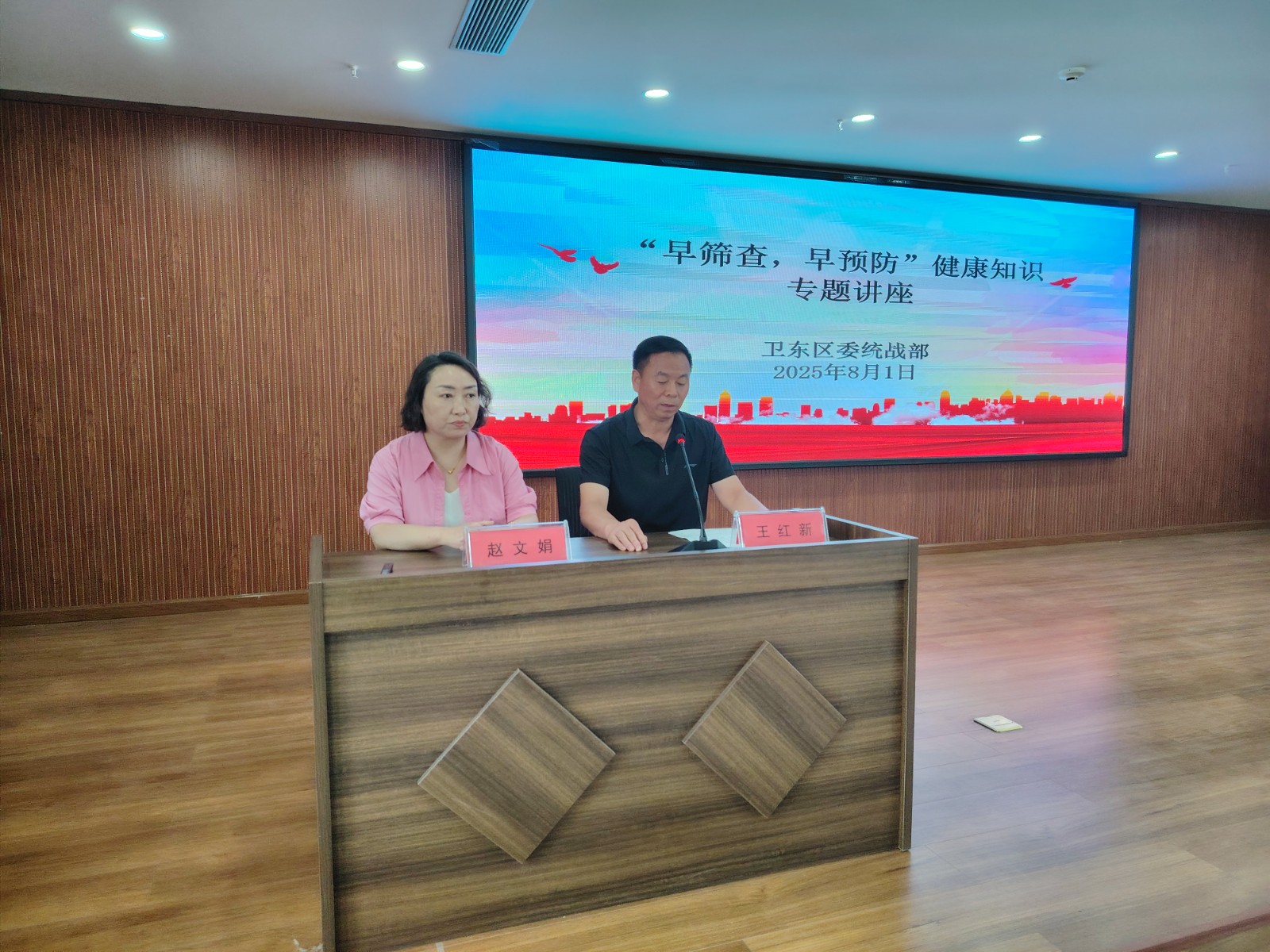 8月1日,平顶山市卫东区委统战部在东安路街道东苑社区举办“早筛查、早预防”慢性病健康知识专题讲座,特邀九三学社卫东区基层委主委、平顶山市第一人民医院老年病科主任医师赵文娟到场授课,区各民主党派、政协委员、工商联会员企业、知联会、新联会代表及统战系统全体人员共计100余人聆听讲座。