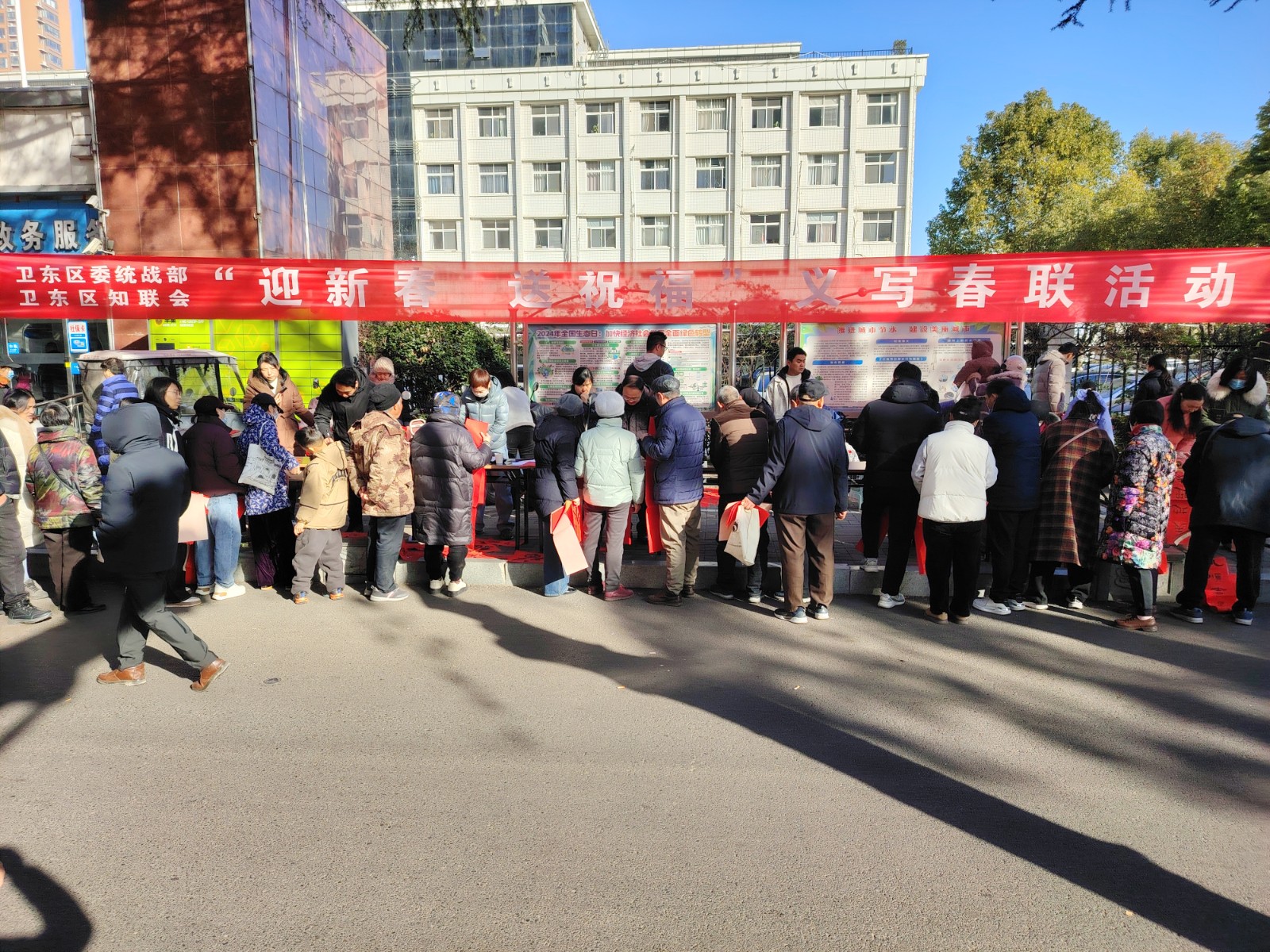 1月15日,平顶山市卫东区委统战部、区知联会在区政府门前开展“迎新春 送祝福”义写春联活动。