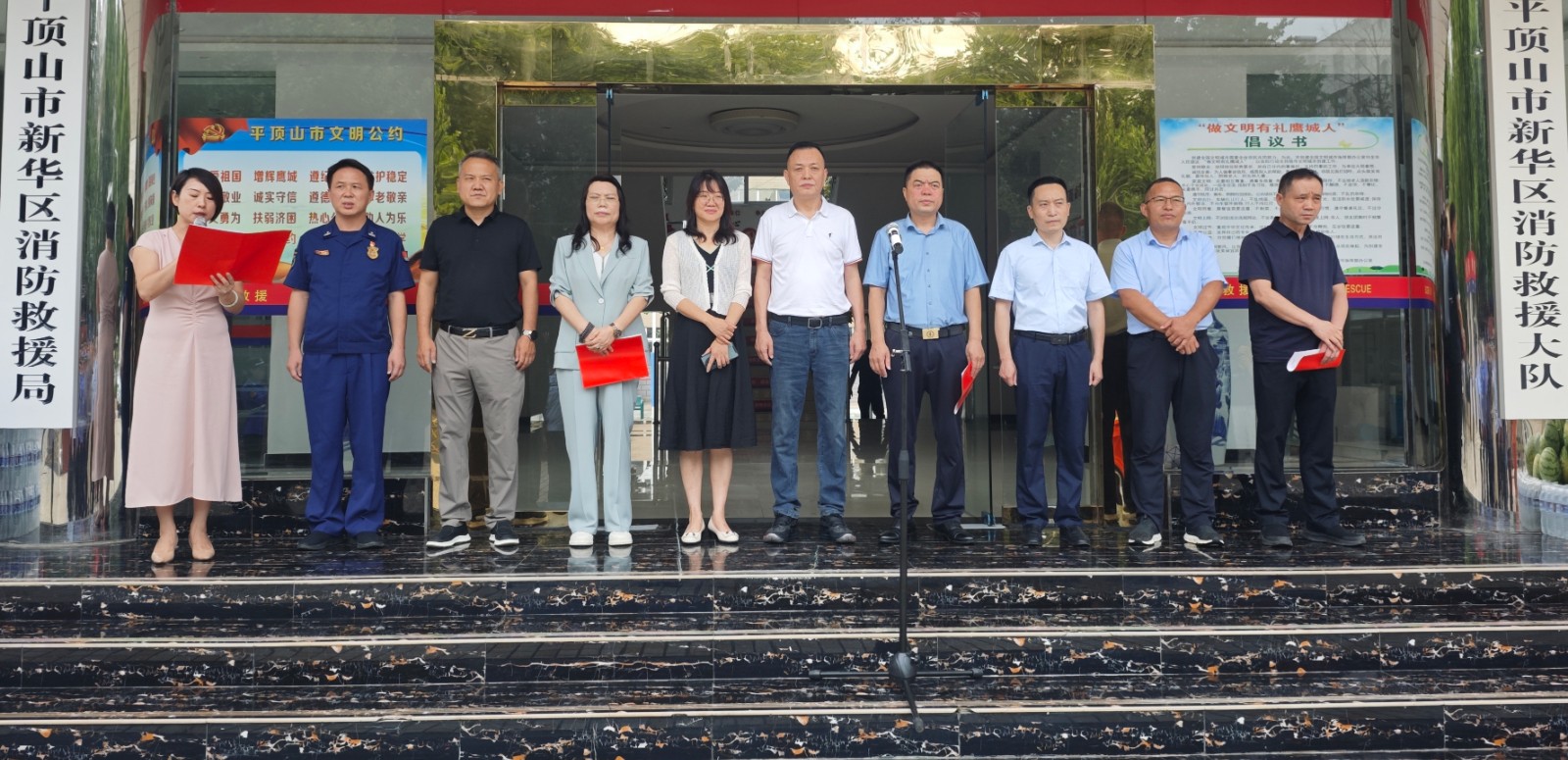 中国初保基金会健康援助基金会副主任秦锡明,省中医研究院促进会产创发展中心主任任广志,民建市委会专职副主委吴会停,新华区委常委、统战部部长谷向,民建市委会副主委、新华区政协副主席罗原恒,区委统战部三级调研员陈志伟,民建市委会招商引资专委会主任、河南人人达智能科技发展有限公司总经理任淑霞,区应急局党委书记、局长李闯,区消防救援大队党委书记、政治教导员王宇出席活动。相关单位有关负责同志和职工代表参加了捐赠仪式。民建市委会秘书长、民建新华区基层委员会主委杨宜霏主持仪式。