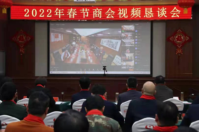 1月22日上午,河南叶县县委九楼多功能会议室喜气洋洋,一片祥和, 2022年春节商会视频恳谈会在此召开。
