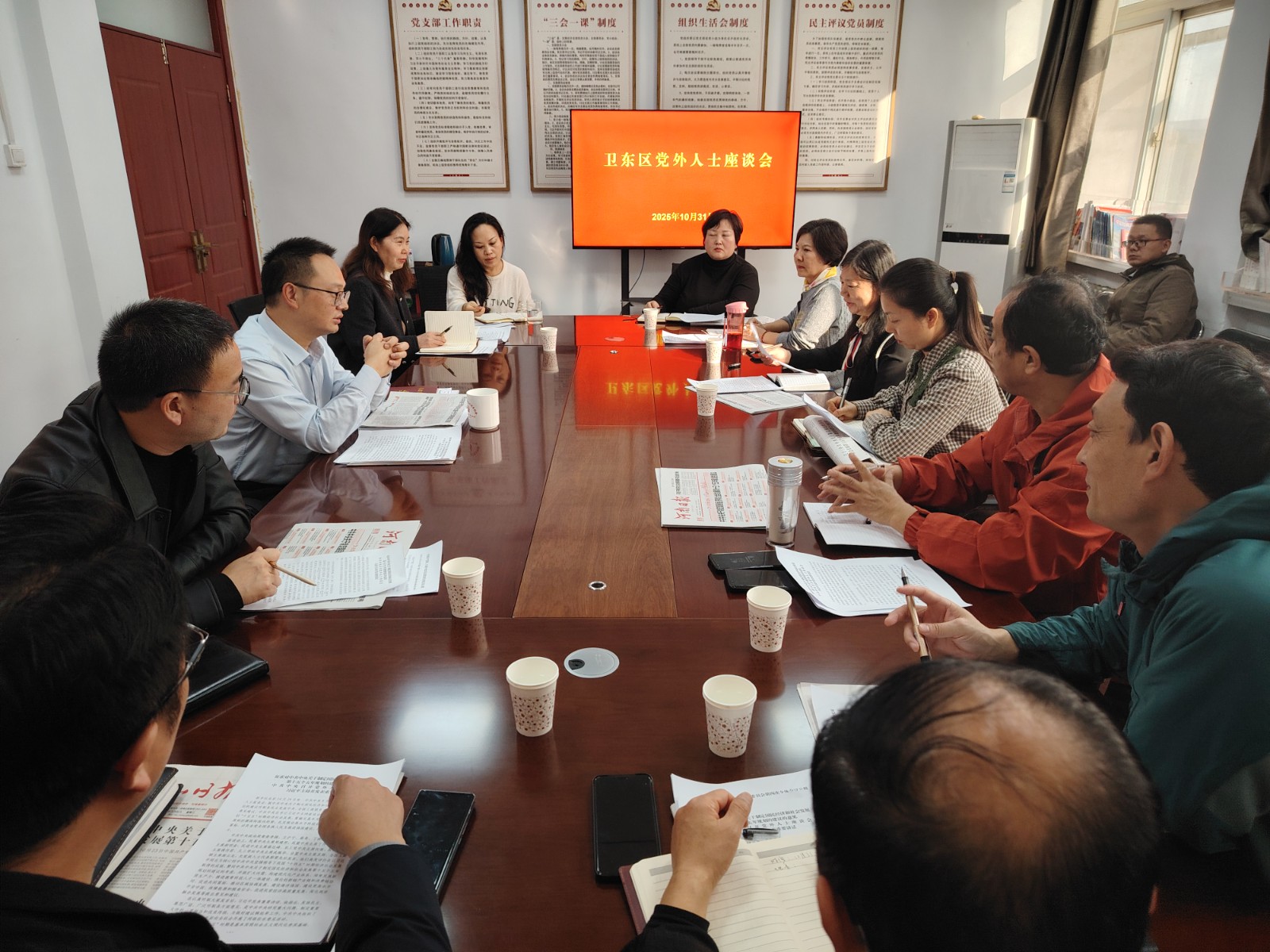10月31日,卫东区委统战部组织召开党外人士座谈会。卫东区委常委、统战部部长高军华主持。全区各民主党派、工商联、知联会、新联会负责人参加。