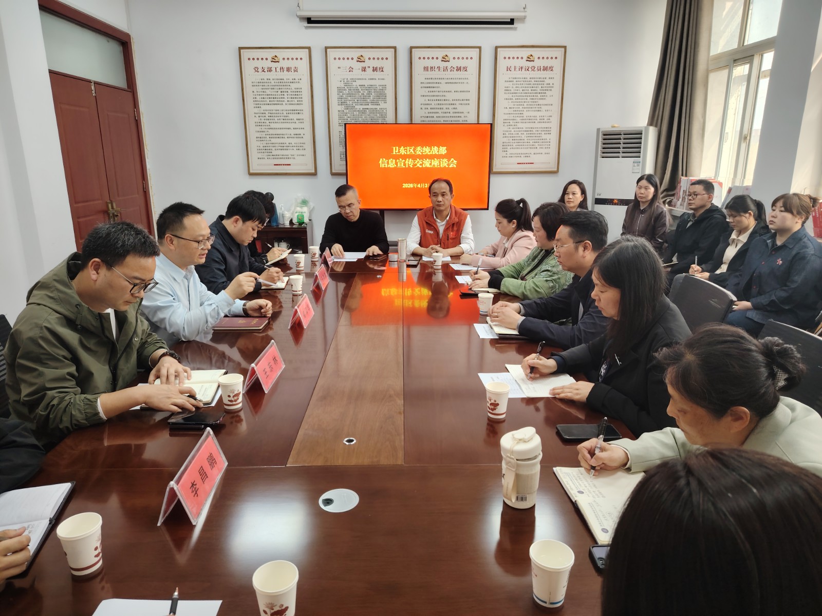 4月3日,卫东区委统战部组织召开信息宣传交流座谈会,区委常委、统战部部长高军华主持会议并讲话,市委统战部政研室主任王洋洋参加,全区各民主党派、知联会、新联会、统战系统各部门负责人及信息员参加。